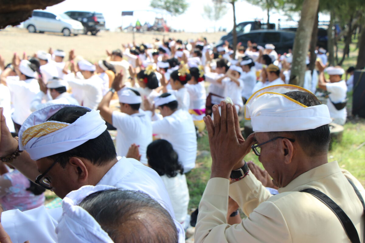 Dalam prosesi tersebut, umat mengiring simbol-simbol suci dari pura menuju samudra untuk disucikan.
